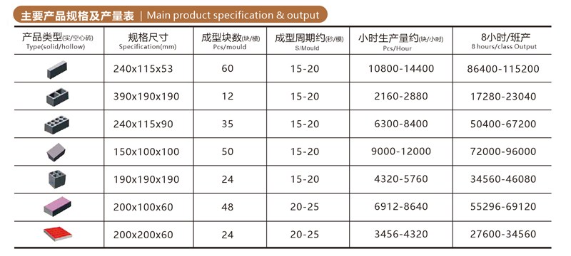 | 磚數(shù)量(塊/8h) | 62834-86400 | 2.5KG/塊 | |