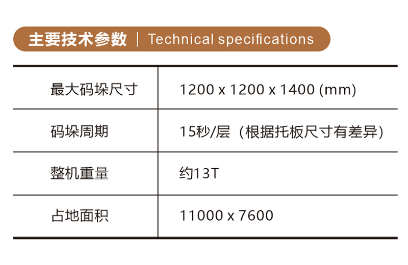碼垛周期 15秒/層 (根據(jù)托板尺寸有差異,誤差在1-3秒)